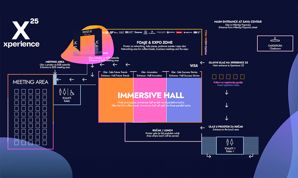 U prostoru Immersive Hall-a očekuju vas inspirativna predavanja, paneli i networking u Foaje & Expo zoni. Pronađite svoje mesto među liderima eCommerce industrije!